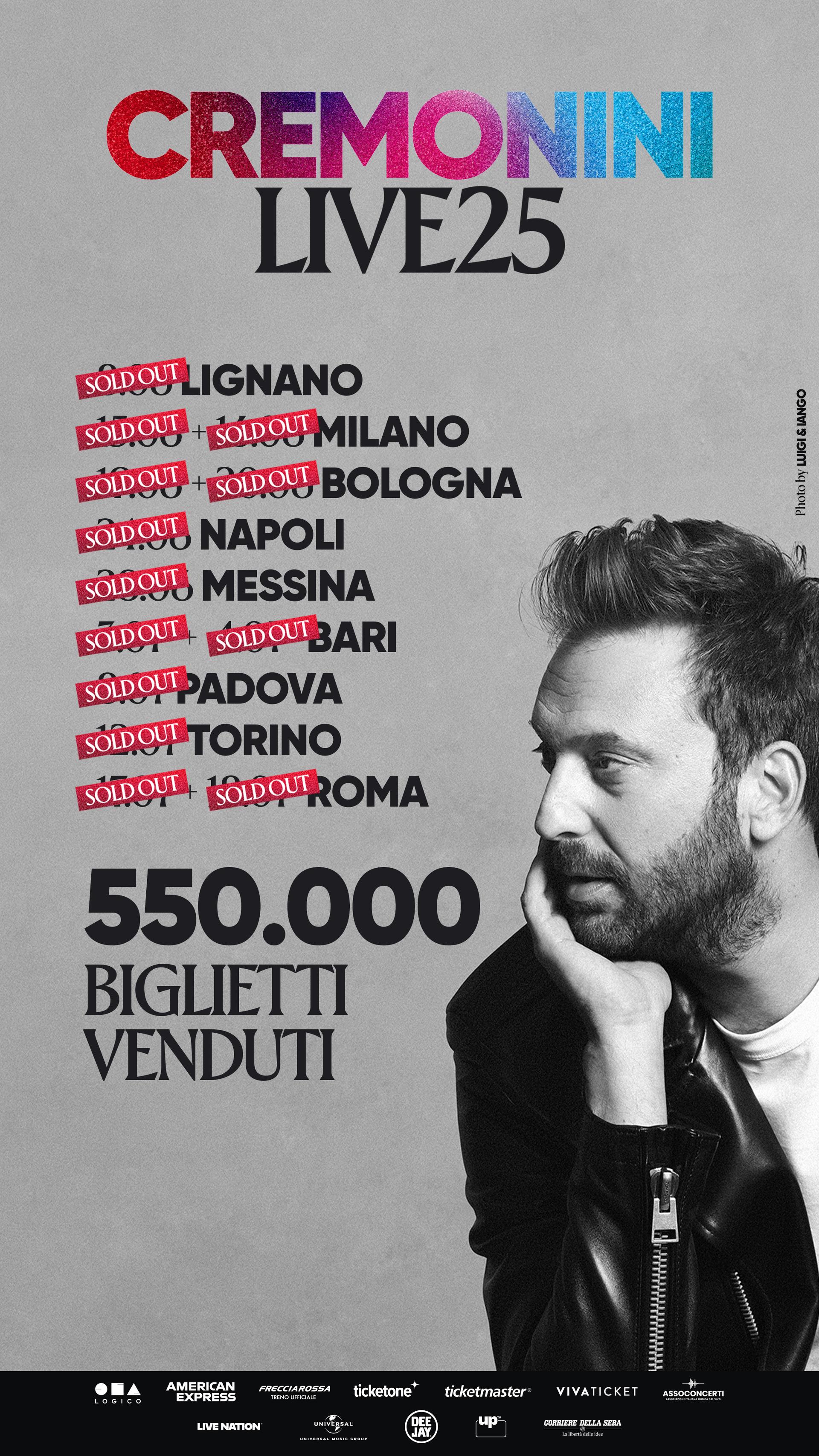 Sono numeri straordinari quelli del CREMONINI LIVE25, il nuovo tour di Cesare Cremonini che partirà con una doppia data allo stadio San Siro di Milano il 15 e il 16 giugno. Con 13 stadi sold out e oltre 550 mila biglietti venduti, si conferma tra gli eventi live più attesi della prossima estate. A tre […]