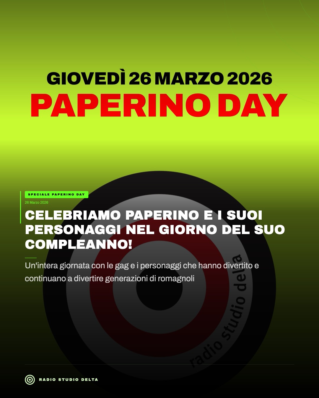 Giovedì 26 marzo 2026 celebriamo il compleanno di Paperino con il Paperino Day! In Romagna non si intende quello dei fumetti, ma quello della radio: uno spazio nato quasi per gioco, insieme a un gruppo di amici senza esperienza nel mondo dello spettacolo, capaci però di creare qualcosa di unico. Bastavano un microfono, un po’ di fantasia e il dialetto romagnolo, ed ecco che prendeva vita un mondo popolato da personaggi spassosi e indimenticabili.