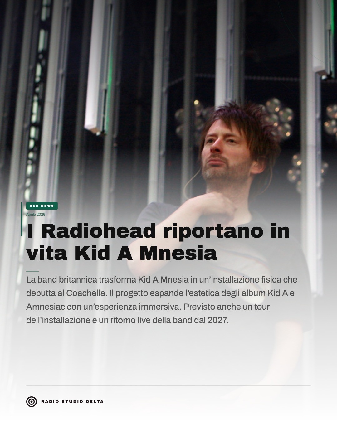 I Radiohead riportano al centro della scena uno dei capitoli più influenti della loro carriera, trasformando Kid A Mnesia in un’esperienza fisica. Dopo la versione digitale del 2021, il progetto che ha debuttato lo scorso 10 aprile al Coachella, si è svolto all’interno di una struttura sotterranea costruita appositamente: un bunker di oltre 1.600 metri quadrati pensato per immergere il pubblico in un viaggio audiovisivo totale.
