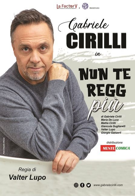 Gabriele Cirilli ci parla del suo ultimo spettacolo teatrale, “Nun Te Regg Più“: lo spettacolo della saggezza, in cui Gabriele non regge più i compromessi, le insoddisfazioni, i tranelli, le incertezze, le ingiustizie, i luoghi comuni, il falso perbenismo, la normalità, che poi chi stabilisce cosa è normale o anormale. Tutto questo insieme di sentimenti viene portato in scena da Gabriele con grande ironia e divertimento o quasi, ma con uno sguardo verso la poesia. Il protagonista si mette a nudo per il suo pubblico che ormai è la sua famiglia. L’opera di Gabriele è l’espressione della maturità artistica di un mattatore della risata che ha ormai conquistato il grande pubblico.