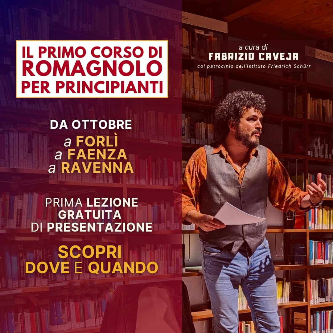 E ora… non vi resta che seguire la pagina di Fabrizio “@rumagnulesta” per restare aggiornati sui prossimi corsi e date. I corsi hanno il patrocinio dell’Istituto Friedrich Schürr, istituto intitolato a Friedrich Schürr, famoso linguista austriaco ed emerito studioso del romagnolo.